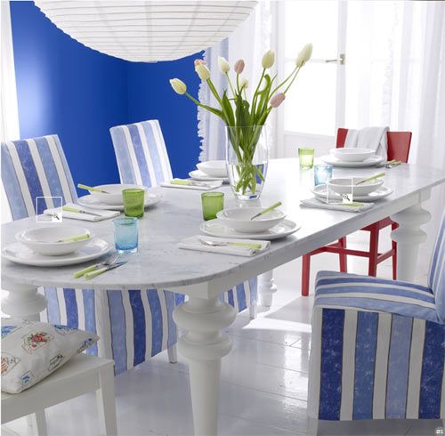 白色與藍(lán)色的搭配最能凸顯純凈感,在藍(lán)色墻面的映襯下,這張大理石面的白色餐桌充滿了地中海風(fēng)情。