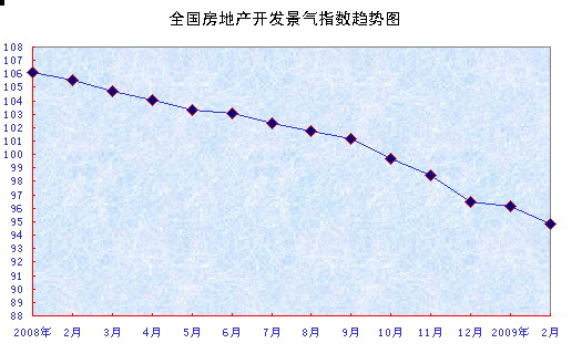 2月份,全國(guó)房地產(chǎn)開(kāi)發(fā)景氣指數(shù)(簡(jiǎn)稱“國(guó)房景氣指數(shù)”)為94.86,比去年12月份回落1.6點(diǎn),比去年同期回落10.69點(diǎn)。