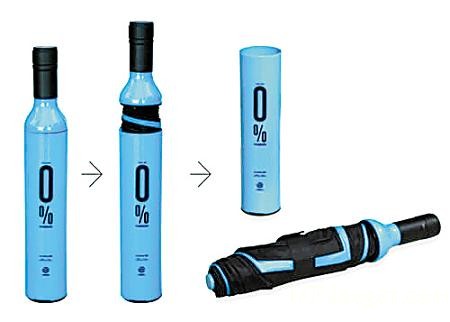 你能想象,那一只只可愛漂亮的酒瓶子是一把雨傘嗎?是的,它就是一把傘。雨傘可以折疊成酒瓶的形狀?沒錯!設計師將雨傘的折疊方式進行改良設計,最終折疊的雨傘掛在架子上就像是一個個多彩的小酒瓶??磥砟闶钦姹贿@外表給欺騙了。