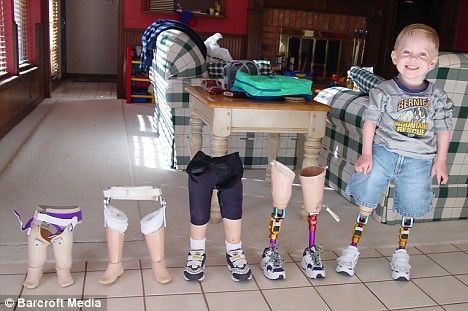 據報道,由于科迪生下來就患有一種罕見的骶骨發(fā)育不全癥,他的一條腿天生缺少脛骨和膝蓋骨,另一條腿的膝蓋天生無法彎曲,所以他根本無法自然走路。在醫(yī)生的建議下,當科迪15個月大時,醫(yī)生通過手術截除了科迪膝蓋以下的部分,并為他安裝了一副假肢。