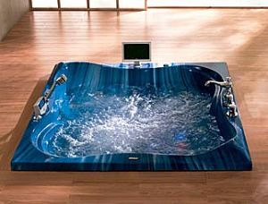 浪鯨衛(wèi)浴這款爵士系列的浴缸名副其實(shí),流線型設(shè)計頗具貴族氣派。電視、溫度顯示器、花灑、阿拉丁造型的水龍 頭,都彰顯著貴族的品味。浴缸底部有七彩的小燈,除了在造型和功能上花心思,在燈光效果上也造了不少文章,令使用者更能享受沐浴的過程。