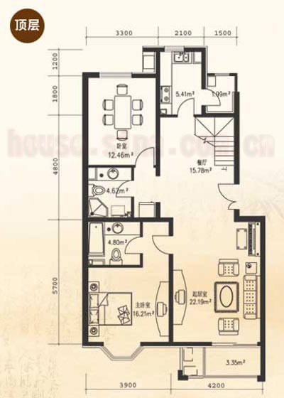 2、樓上樓下雙主臥室南向采光,心情與陽光一起開放。