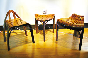 精選理由:家具之所以能打動人,是因其優(yōu)美的造型能引發(fā)人們的情感共鳴。這組名為“花樣年華”的二等獎桌椅系列大膽地運用了曲線結構,體現了強烈的流線感,而且這種流線造型更能夠讓看到它的人產生愉快的心情。設計者選擇了沉穩(wěn)大氣的黑胡桃木來打造這組桌椅,色澤穩(wěn)重,手感細膩,紋理粗獷,在時尚的造型之中透露出一絲古樸的氣息。在工藝上,這組家具采用了中國古典家具的榫卯結構,整個坐具無其他連接組件,渾然天成,而漆制木蠟油則保持了實木的本色,給人一種自然的心靈感受。