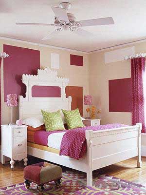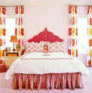 波浪形的布藝床頭設(shè)計(jì)非常適合家里的十幾歲的小公主。床頭上橙色的大扣子也是點(diǎn)睛之筆。