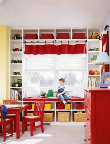 這個(gè)可愛(ài)的小男孩,在這里盡情享受屬于他的樂(lè)趣,農(nóng)場(chǎng)主題臥室讓這里成了一個(gè)盡情玩耍的專屬空間,與居住在里面的小主人,共同成長(zhǎng)。靠著窗口的位子是一個(gè)休息的地方,這里的設(shè)計(jì)一直延伸到天花板,讓整個(gè)小空間顯得寬敞明亮。把孩子喜歡閱讀的書(shū)籍都放在他能看見(jiàn)的地方,玩耍之余也要開(kāi)闊視野。