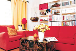 手法2:將布藝沙發(fā)改換淺色系的罩套,選用的顏色與周?chē)h(huán)境的主色調(diào)反差越大,越能體現(xiàn)出春意盎然的**。這個(gè)法則同樣適用其他家具與布藝、配飾等的搭配。比如,木質(zhì)色咖啡桌配上亮黃色的矮凳;將玫瑰紅與白色相間、黃色與藍(lán)色相間彩色格紋的靠背墊,隨意擺在白色沙發(fā)上;在木制擱物架上放一匹綠色的披毯……這些搭配都恰到好處,讓你的眼睛倏忽亮麗起來(lái)。