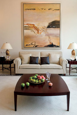 充分利用大空間的“空”,不奢華不張揚(yáng),是主人與設(shè)計(jì)師溝通之后一致的理念。于是,在房間里流連一圈,你看不到任何金壁輝煌的裝飾,也看不到任何的濃墨重彩。只感覺到明亮清澈的光線在寬敞的房間里肆意流淌,視線所及之處無不是簡(jiǎn)約的線條和純凈的色彩。材質(zhì)的使用主要以自然的木、石為主,在空間內(nèi)隨意的鋪陳展開,質(zhì)感樸實(shí)又不乏內(nèi)涵,格調(diào)內(nèi)斂又不失高雅。