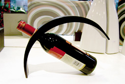 在由澳大利亞設(shè)計師Stevenrodis為首席設(shè)計師的家飾用品專賣店平米家居里,記者就發(fā)現(xiàn)了許多匠心獨(dú)具的新穎廚房家飾品。酒瓶用一個弧形的木制瓶托斜撐著,酒瓶與瓶托呈現(xiàn)出獨(dú)特的造型美。幾個面碗和水杯兩邊出現(xiàn)了古希臘戰(zhàn)士頭盔造型的邊兒,既是裝飾,又有防止?fàn)C手的功能。另一種面碗是木制的,碗邊上設(shè)計了擺放筷子的凹邊,正好放一雙筷子,特別適合單身貴族和青年情侶偶爾在家給自己做點(diǎn)面條時用。當(dāng)然了,造型如此時尚的碗筷不吃飯時放在桌上也可以做裝飾品。另一個遠(yuǎn)看像花瓶的容器,近看才發(fā)現(xiàn),原來是一個不銹鋼架子上面疊放著同樣式和同大小的咖啡杯,下面疊放著和咖啡杯相配的杯墊。這樣的設(shè)計既節(jié)省空間,造型又獨(dú)特,還可以做裝飾品,真是集功能性、裝飾性與藝術(shù)性于一體的設(shè)計作品。