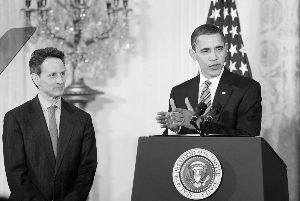 16日,奧巴馬(右)及美財長蓋特納會見中小企業(yè)代表 新華社圖片