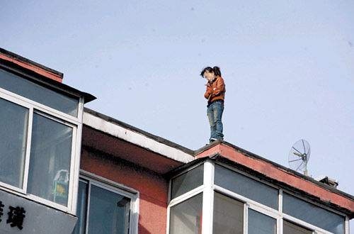 記者從對面樓看到,女警爬到樓頂,在距離那名女子四五米遠(yuǎn)處站住后,一邊與那名女子交談,一邊緩緩向前移動,直到離她只有2米遠(yuǎn)。沒多久,女警將警服脫下,扔到那名女子面前,想讓她穿上取暖。該女子對這一舉動無動于衷,沒有上前撿衣服;女警又將錢包丟給那名女子,也沒有效果。