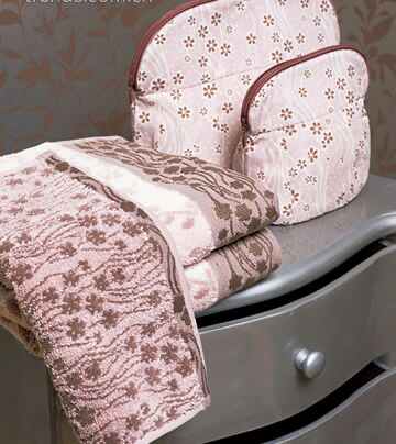 春天般純美和恬靜的粉底上描繪著暗紅色小花的,是浪漫女主人的毛巾和手袋。清麗的小花讓雅致的居室不乏柔和喜悅的輕松感。