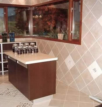 在廚房中小尺寸的瓷磚近來比過去更加流行,很多人發(fā)現(xiàn)小尺寸的正方形瓷磚可以砌出許多意想不到的變化,非常適合小面積的廚房墻面,有的小瓷磚規(guī)格只有5至13厘米,而且小磚也可用作點綴,效果極佳。