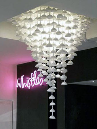 吊燈有多頭吊燈和單頭吊燈,前者用于客廳,后者用于臥室或飯廳。有的將燈泡裝在乳白燈罩內(nèi),使光線散射柔和,有的罩口朝下,燈光直接照射室內(nèi),顯得光燦明亮。還有一種罩口朝上,燈光照到天花板上,然后反射下來,以求光線擴散均勻,光度稍弱,柔和悅目。