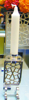 錫镴制成的燭臺(tái),中式窗欞造型與現(xiàn)代風(fēng)格相結(jié)合,打造出能與中式風(fēng)格空間或者現(xiàn)代風(fēng)格空間相呼應(yīng)的燭臺(tái)。