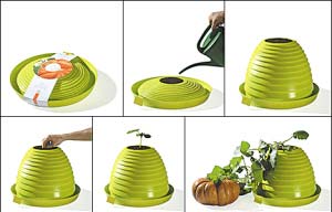 這個可降解的伸縮花瓶在拉伸開來并埋上種子澆水開始使用之后,可以保持正常狀態(tài)9個月時間,之后就可以拋棄到垃圾箱里,在大自然中完全降解。