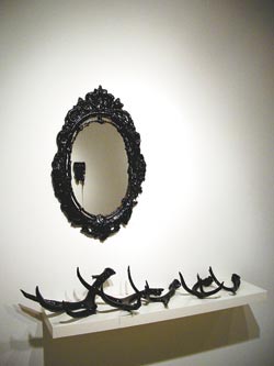 鏡子“女巫”在魔幻電影里,黑色一定是“女巫”的代表色,那些從惡魔世界帶來的鏡子絕對(duì)是奇幻的道具,丑陋的女巫們在精致的鏡子前發(fā)問:“誰是最美麗的女人?”邪惡的鏡子永遠(yuǎn)給出一個(gè)讓女巫們瘋狂的回答。如同用瀝青包裹的鏡框絕對(duì)帶有魔幻的味道,而鏡下的裝飾品則更似“女巫”們的玩具。