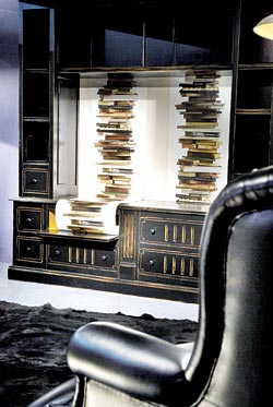 書柜里堆滿了書?不,那只是小魔女的障眼法,那壘成山的書堆原來是一幅貼在書柜里的畫,遠(yuǎn)遠(yuǎn)看去,還以為是好學(xué)的主人的收藏,或許這只是另一個(gè)空間的魔法書,只有擁有了超能力,才能取下觀看吧。