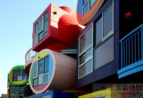 坐落在東京郊外三鷹市的一座老年公寓堪稱世上最花哨的住宅,由日本藝術(shù)家荒川修作和他的妻子、詩人瑪?shù)铝?#183;琴斯根據(jù)多種科學(xué)規(guī)律設(shè)計而成,其中包括神經(jīng)學(xué)及實驗現(xiàn)象。這座建筑外形奇特,色彩艷麗,建筑內(nèi)部也是波瀾起伏,色彩繽紛。設(shè)計者的座右銘是“建筑對抗死亡”。