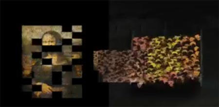 接下來的畫面更令人驚嘆:身披五顏六色發(fā)光二極管“外套”的羊聚集在一塊方形場地里,乍看之下并沒有什么特殊之處。但隨后畫面揭示,每群羊都構(gòu)成作品的一小部分,全部拼好后,竟然組成了達芬奇的名畫《蒙娜麗莎》。