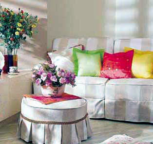 無疑,臥室中最主要的家具應(yīng)該是床,但衣柜的地位也很重要。我選擇了一組實(shí)櫸木的衣柜,有三個大抽屜,里面可以放衣服和其它日用品,抽屜上面的開放空間可以方便的放置許多物品,電視置于其中,充分地利用了空間。磨砂玻璃柜門,其質(zhì)感使室內(nèi)顯得明亮開闊。