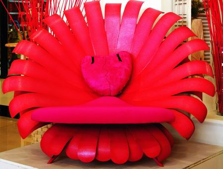 粉色太陽花瓣構(gòu)成了沙發(fā)的整體,花蕊設(shè)計(jì)成桃芯靠墊,花蒂則成為整個(gè)沙發(fā)的支撐點(diǎn)。坐在這吐蕊的太陽花沙發(fā)上,仿佛回到那個(gè)花仙子陪伴的童年。