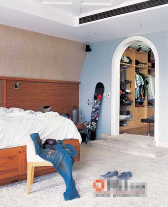 滑板立在墻邊,褲腳隨意地垂在地毯的松柔綿軟里,帆布鞋努著倔強表情。不消說,這絕對是個男人的房間,散漫卻不凌亂,原來隨性也有隨性的好處。