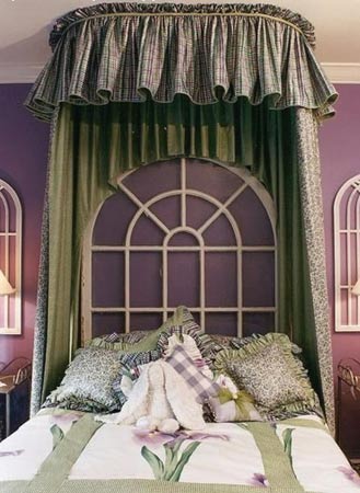 一般講,床頭那面墻沒有窗子的。人為地裝飾出假窗,在安全、不受風又享受通暢感,比如,造一個“中式”的圓形窗或“月亮門”,是別有風味的。