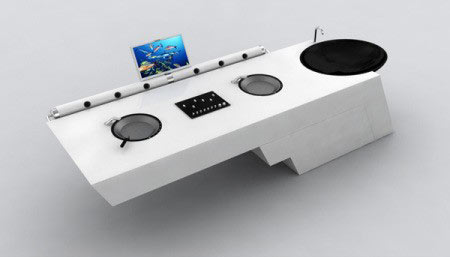 這款高科技廚臺(tái)具備“兩個(gè)烹飪單元,一個(gè)水池,還內(nèi)置多媒體電腦?!蹦壳斑€不清楚這一概念設(shè)計(jì)是否會(huì)投入生產(chǎn)。用戶可以控制烹飪單元自動(dòng)噴灑各種調(diào)料,比如鹽、胡椒粉、味精等等。內(nèi)置的電腦可以用來(lái)播放音樂(lè)、上網(wǎng)找菜單,和朋友電話等等,不過(guò)做菜的時(shí)候三心二意可不是一個(gè)好主意。