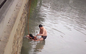 林先生稱,當時他跳入河后發(fā)現(xiàn)河邊雖然很淺,但河中間卻比較深,他根本夠不著底。幸虧輕生女子衣服穿得很多,漂浮在水面上,他游過去將其拉至岸邊,由于河邊的圍墻有三四米高,及時趕到的警察拋下繩子和救生圈,輕生女子被眾人拉了上來。