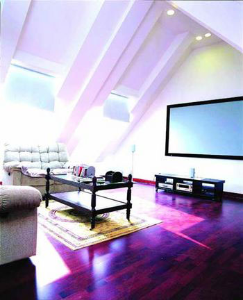 如今,在客廳里為自己準(zhǔn)備一套“家庭影院”已經(jīng)并不稀奇了。利用閣樓空間,為自己和家人打造一個“高高在上”的“私人電影院”才叫時尚。一面墻的寬大屏幕,幾把舒適柔軟的沙發(fā),一滿桌的零食冷飲。當(dāng)窗簾放下,燈光熄滅,一家人滿懷期待地注視著銀幕,此時的觀賞感受是任何高檔電影院都提供不了的。為了增加些家庭的樂趣,你還可以在電影“放映”前自己動手畫。