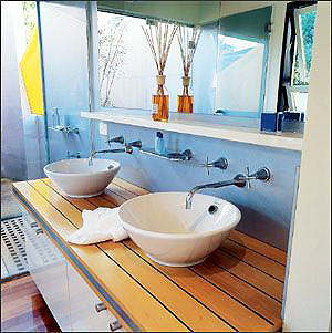 從目前的家裝市場(chǎng)看,裝修設(shè)計(jì)有效利用浴室空間成為主流,其中寬邊洗臉盆就是其中一種流行元素。臺(tái)下式、一體式掛墻、半臺(tái)上式等外形多樣,可以根據(jù)浴室裝修空間而量身定做。