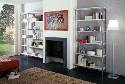 擱架,做為一種開放的展示方式,被許多商場(chǎng)等廣為利用。隨著人們對(duì)生活品質(zhì)的要求越來越高,擱架設(shè)計(jì)開始引入到時(shí)尚人士的家庭裝修和裝飾中,把收納變成了個(gè)性的展示。