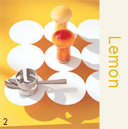 2 不同濃淡的黃色疊加在一起非常有層次感,白色杯墊襯托出黃色的鮮亮,而鋼制的小器物放在上面總領(lǐng)了全體。
