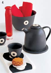 由紅色水杯襯托出的這組具有日本“和式”風(fēng)格的茶具格外引人注目,集中體現(xiàn)了“和式”韻味。中間的黑白圓點(diǎn)讓茶具也有了快樂的表情,怎能讓人不動心呢?