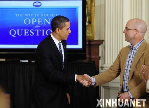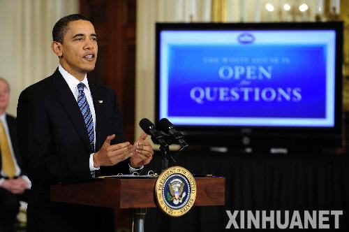 奧巴馬當(dāng)日在白宮首次以網(wǎng)絡(luò)視頻方式回答網(wǎng)友及現(xiàn)場(chǎng)民眾代表的提問。就業(yè)、醫(yī)療、教育、房貸等民生問題是當(dāng)日奧巴馬網(wǎng)絡(luò)答疑的重點(diǎn)。