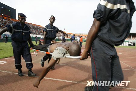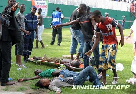 據(jù)BBC駐象牙海岸記者約翰-詹姆斯發(fā)回的消息,這場(chǎng)比賽大約有36000名球迷涌入球場(chǎng)(有媒體提供數(shù)據(jù)是50000名)。據(jù)報(bào)道,比賽結(jié)束后,球迷推倒了體育場(chǎng)內(nèi)的一面墻體,為了控制場(chǎng)內(nèi)情緒激奮的人群,可能是警察使用了催淚瓦斯,但加劇了人們的恐慌,最終造成了19人死亡的慘劇,另外還致使132人受傷。