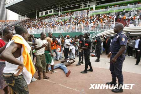 據(jù)法新社報(bào)道,北京時(shí)間3月30日凌晨(科特迪瓦當(dāng)?shù)貢r(shí)間29日),世界杯非洲區(qū)預(yù)選賽,東道主科特迪瓦5—1擊敗馬拉維隊(duì)的比賽,由于球迷推到體育場(chǎng)內(nèi)一堵墻引發(fā)了球場(chǎng)騷亂,已經(jīng)造成了19人在球場(chǎng)內(nèi)喪生。