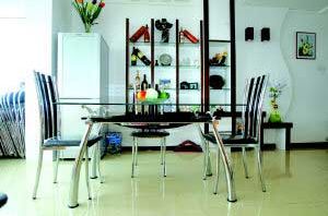 方案五在設(shè)計上突出之處是燈光的設(shè)計與燈飾選擇。在家居設(shè)計中燈光的運用非常靈活。光與影的營造下,家居增添上一份迷人的氣氛。餐廳的一角采用明亮燈飾,氣氛活躍。而客廳則以大小不一的射燈為主,令客廳環(huán)境顯得安詳而幽雅。燈光不僅是用于照明,同時也是家居的配角。俗話說,紅花也要綠葉扶。此方案中選用的臺燈燈座設(shè)計古樸大方,與整個家居裝飾風格一致。