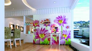 以大屏的玻璃固定在不銹鋼架或木制架欄上,簡約清爽而且和整體環(huán)境很好配合。玻璃的規(guī)格在58毫米以上,壓花玻璃、噴砂彩繪玻璃或磨花造型均可。半遮半掩中就區(qū)隔了空間。旁邊再擺放一盆綠植,讓你一進門就感覺到門外的春意。