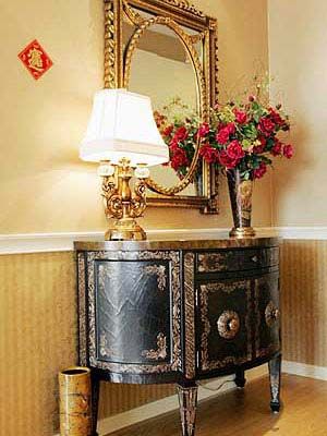 要想裝飾出一個(gè)有氣氛的空間,一些可愛的小飾物是必不可少的。例如,在玄關(guān)的墻壁上可掛些風(fēng)景裝飾畫,美麗的景色讓人一進(jìn)門就心曠神怡;掛一幅與家人合拍的照片或是小型掛毯,可以感受到家庭的溫馨;或者掛上一面鏡子,不論是方形或是長形,都有不錯(cuò)的效果,既可擴(kuò)大視覺空間,又可在主人出門前檢視儀容。小擺件及布藝品更是調(diào)節(jié)氣氛的好幫手,找一個(gè)與玄關(guān)顏色相配的小花瓶,插上幾枝干花或是小的鮮花,也一樣有情有景。另外像別致的相架、精美的座鐘、古樸的瓷器等都是不錯(cuò)的選擇。玄關(guān)雖小,但其中樂趣融融,只要您稍加留心,玄關(guān)就會成為家中的第一道風(fēng)景。