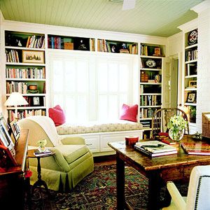 制作一個(gè)嵌入式的書架來作為窗框之用。當(dāng)主人坐在窗臺(tái)上時(shí),只要舉手之勞,就可以取書閱讀了。