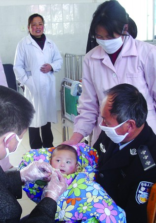 警方為嬰兒采集血樣,以便尋找其父母。董釗 攝