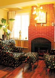 本案客廳的設(shè)計(jì)風(fēng)格為美式鄉(xiāng)村風(fēng)格,家具、壁爐、居室門等元素的色調(diào)比較和諧統(tǒng)一。鴻利博雅裝飾公司設(shè)計(jì)師在壁爐的營造中,采用了毛石鋪面,顯得古樸、自然。設(shè)計(jì)師稱,對于兼顧裝飾和取暖作用的壁爐來說,在材料的選擇上要選擇那些隔熱和防火效果好的材料,同時(shí)壁爐的位置也要盡量避開燃?xì)庠O(shè)備和廚房。那么,對于裝飾作用的壁爐造型,就要易于打理并注意運(yùn)用燈光增加情趣。