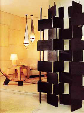 設(shè)計(jì)時(shí)尚的屏風(fēng),有時(shí)甚至比擺放在它前面的家具更加吸引目光。這類屏風(fēng)無(wú)論是材料還是設(shè)計(jì)都非常大膽、新穎。選料上,往往擯棄了那些厚重的材料,由透明、輕柔的材料所取代。據(jù)介紹,以往屏風(fēng)主要起分隔空間的作用,而現(xiàn)在更強(qiáng)調(diào)屏風(fēng)裝飾性的一面,薄薄的屏風(fēng),既保持空間良好的通風(fēng)和透光率,營(yíng)造出“隔而不離”的效果。