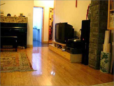 青磚處原本是客臥的間隔墻。敲掉后將臥室向里移了1米多,抬高做了地臺(tái)。梁不能敲,干脆帖上青磚,算客廳和餐廳的隔籪斷。