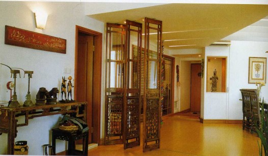 另外,在屏風(fēng)的大小選擇上已經(jīng)不能遵循古人的做法了,因?yàn)橹袊?guó)傳統(tǒng)大宅院入門(mén)之處均設(shè)有大型的玄觀,而現(xiàn)代都市的住宅普遍面積狹窄,若再設(shè)置傳統(tǒng)的大型玄觀,顯然不和時(shí)宜。折衷的辦法是用玻璃屏風(fēng)作間隔,這樣既可以防止外氣從大門(mén)沖入客廳,也可令玄關(guān)不顯得過(guò)于狹窄。