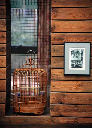 用鸚鵡的絢爛色彩,可打破原木墻面的濃厚懷舊感。在這里,地面采用的材料最好與墻面協(xié)調(diào),色澤、肌理一致的自然材料都可以有很不錯的表現(xiàn)。