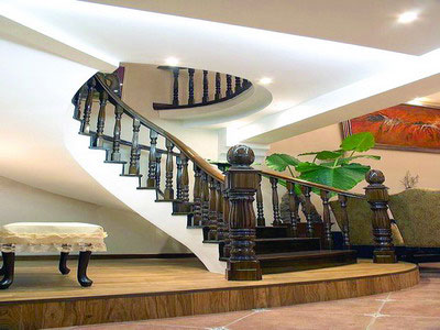 弧梯:是以一個(gè)典線連接樓上樓下,其美觀大方,行走舒適,沒(méi)有折梯的生硬,也沒(méi)有旋梯的不安全感,是最為理想的樓梯,但一定要有足夠的空間,才能達(dá)到最好的效果,是大復(fù)式與獨(dú)立別墅的首選。