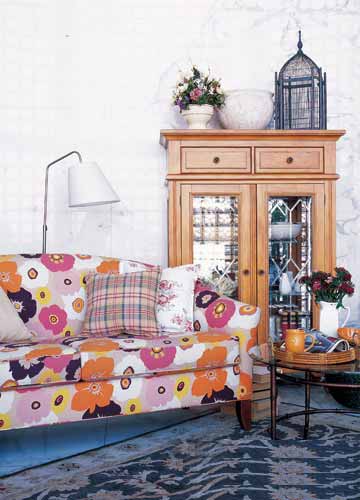 不論何種風(fēng)格的客廳,總會(huì)以包容的姿態(tài)迎接客人的到來,而布藝沙發(fā)上大朵的花卉圖案會(huì)讓客廳顯得更為熱情和開放。橙色、粉色的加入也使得顏色更為跳躍。而地毯上的暗色花紋美麗精致,讓你看到它就滿心歡喜。