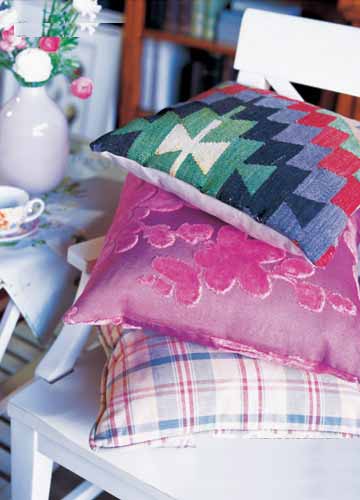 4、靠包適宜選取溫暖明亮的顏色,如果是同一色系,那么就在形狀大小與圖案上有所區(qū)分,避免過度繁復(fù)。